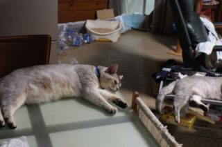 猫らの姿【画像】 海獣現る! 事務室にて.... 海獣現る!! 吠える!「にゃーーー!」諦めたか?すまし顔。 向きを変えて...右の方には、事務室に入ってくる引き戸がある。その隙間に向けて、海獣不二子が鳴く。 にゃーーー(開けろーー) 猫らのいる居間から、昼間、飼... 2022.07.26 猫らの姿【画像】